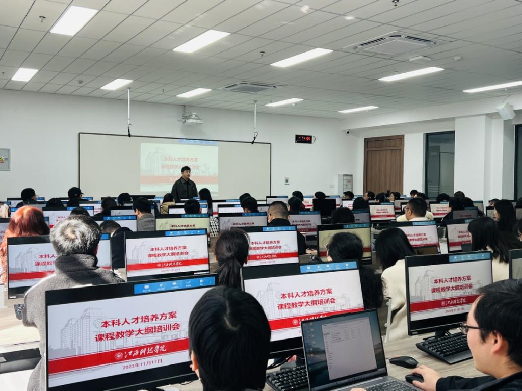 培训会上,秦琛副处长首先详细解读了《关于开展本科人才培养方案课程教学大纲修订工作的通知》;其次,从课程基本信息、课程描述、课程目标、课程目标与毕业要求指标点的对应关系、教学内容与课程目标的对应关系、课程考核、参考资料等方面讲解了课程教学大纲的撰写方式和方法,强调了撰写的重点和难点;最后,针对各参培教师提出的问题进行解答。
