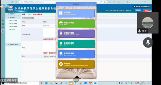工程师对参会人员就实践教学综合服务平台毕业实习管理系统相关功能及操作流程进行培训。一是介绍了毕业实习管理系统的布局及功能;二是对系统使用流程及任务完成步骤进行了细致讲解;三是介绍了学校各级使用主体的操作次序及注意事项;四是对学生实践教学自助学习系统手机端的操作流程进行示范。最后,工程师就各学院提出的技术问题就行了详细解答。