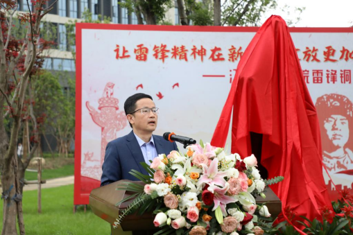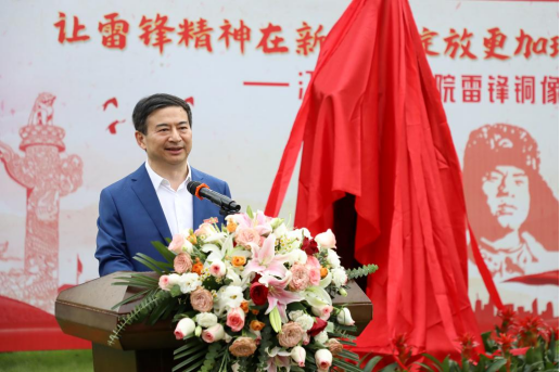 张海涛校长在揭幕仪式致辞中表示,60年来,雷锋的名字家喻户晓,雷锋的事迹深入人心,雷锋精神滋养着一代代中华儿女的心灵。无论时代如何变迁,雷锋精神永不过时、永久流传。她现场倡议,从自己做起,从领导干部做起,全体师生做雷锋精神的坚定信仰者,将学习雷锋精神贯穿于思想政治教育、日常行为习惯养成、专业实习、择业就业创业全过程,做到真学入脑、真懂入心、真用入行;做雷锋精神的创新传播者,将传播雷锋精神融入日常学习工作中,引导青年学子在志愿服务、“三下乡”等活动中传播雷锋精神、践行雷锋精神,汇聚传承弘扬雷锋精神的青春力量;做雷锋精神的忠实践行者,结合当前主题教育调研任务,深入教室、宿舍、食堂,解决师生急难愁盼问题,维护好师生切身利益,在为师生、为社会服务中寻找人生的价值与意义。