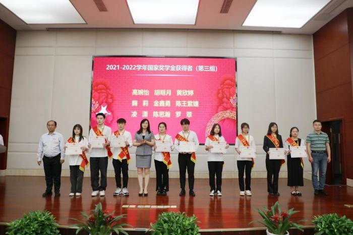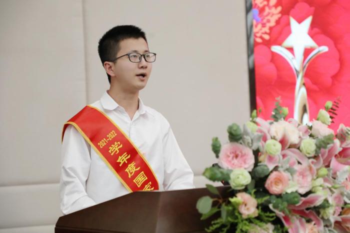 信息工程学院桑柳剑、医学院王妃、音乐舞蹈学院李钦作为国家奖学金获得者代表发言,对国家、学校、老师的关怀与培养表示感谢,并与同学们分享学习经历、获奖经验,鼓励同学们珍惜时间,共同努力奋斗,争做新时代合格的建设者和接班人。