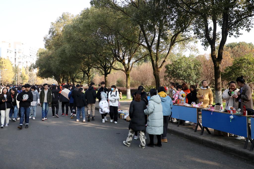 市集现场,商品交易区、成果展示区、项目体验区、互动区、公益区等五大区域人潮涌动、热闹非常。来来往往的“赶集”师生或低头观看,或抬头环顾,在各色创意类、特产类商品的“淘宝”中尽享“逛吃逛吃”和“买买买”的乐趣。当天,党委副书记、副校长闵桂林在校团委、各学院有关负责人的陪同下来到活动现场,和师生一同感受市集热闹,并与同学们亲切交流。
