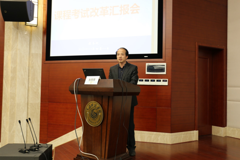 教务处马红坤处长对近年来学校课程考试改革的总体工作进行了简明扼要的总结,他进一步阐述了开展课程考试改革的重要性、考试改革采取的1+X+Y特色考核方式的多样性及目前考试改革工作的进展情况。