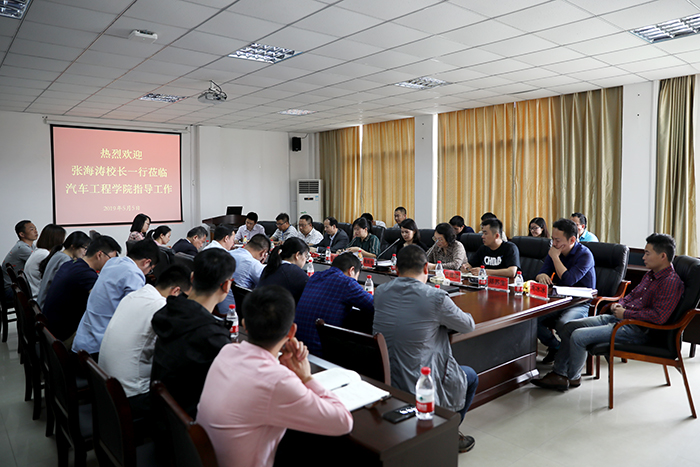 5月5日上午,张海涛校长,黄辉玲、马红坤副校长,熊爱民顾问等校领导深入汽车工程学院调研指导工作,与该学院教师代表及辅导员代表进行了座谈交流。