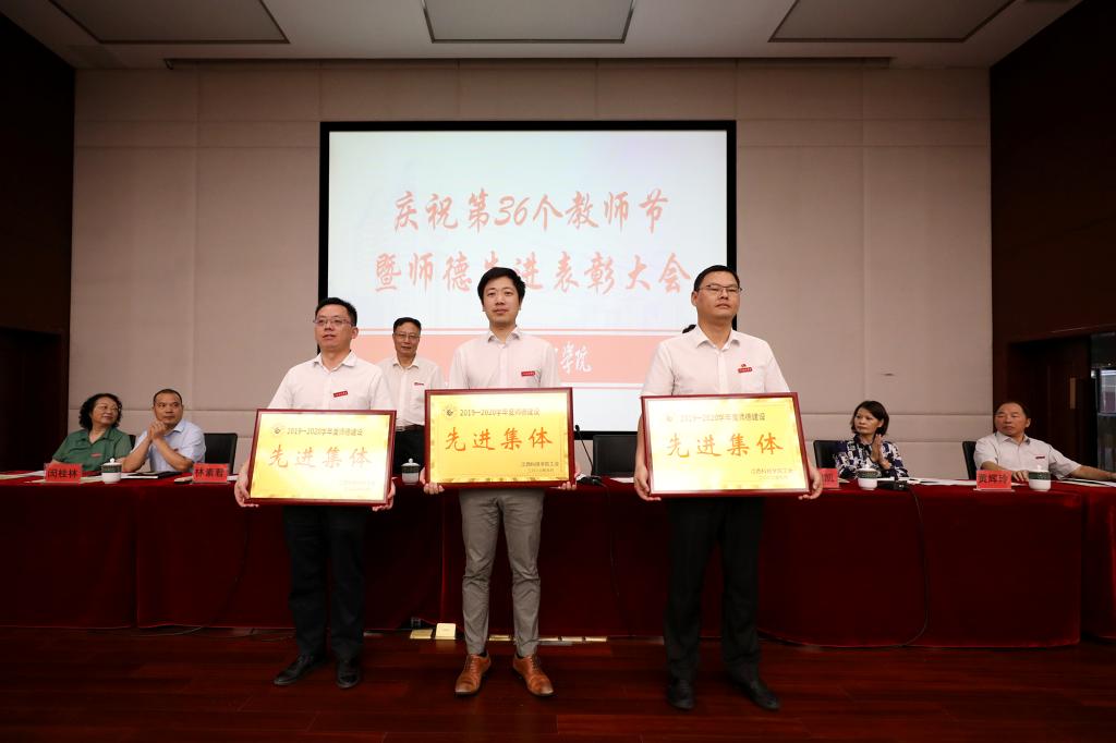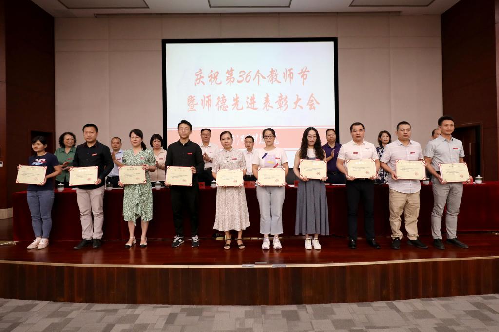 林素君宣读了《关于表彰学校第十五届(2019—2020学年)师德建设先进集体和师德先进个人的决定》。校领导为受表彰的先进集体和个人颁奖。