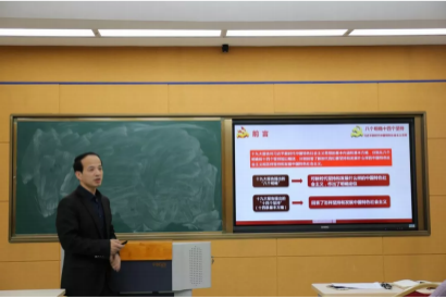 11月2日下午,教务处党支部组织支部全体党员在J1-316室举行专题党课,学习习近平新时代中国特色社会主义思想。党支部书记马红坤以“习近平新时代中国特色社会主义思想解读”为题为支部全体党员上了一堂党课。